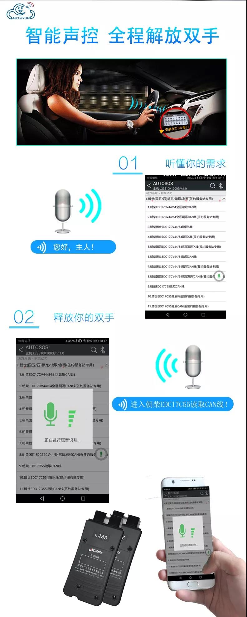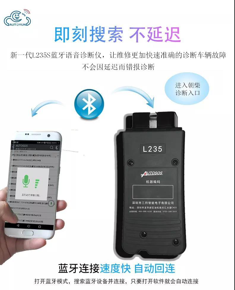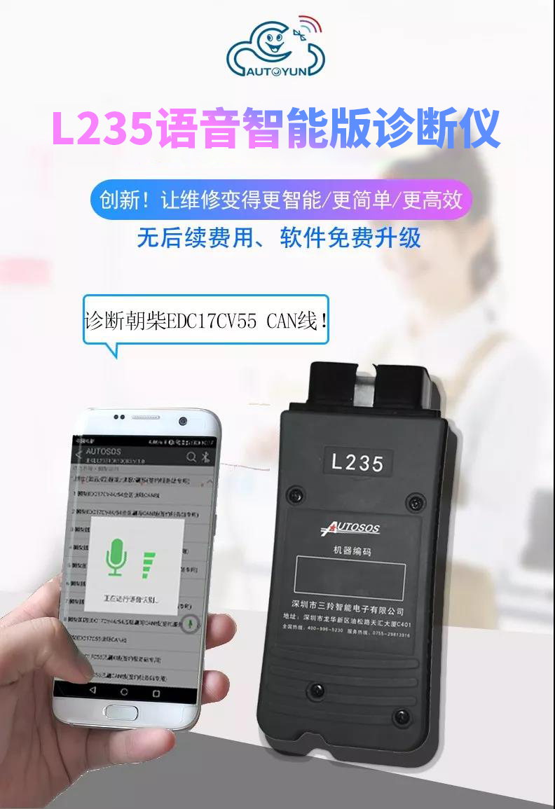聯(lián)動(dòng)云L235手機(jī)版柴油解碼器是深圳市三羚公司基于手機(jī)安卓系統(tǒng)開發(fā)的一款便攜式柴油發(fā)動(dòng)機(jī)故障解碼器,主要適用對象為汽修學(xué)徒和運(yùn)輸公司及車隊(duì)司機(jī),聯(lián)動(dòng)云手機(jī)版柴油解碼器可以輕松實(shí)現(xiàn)讀取發(fā)動(dòng)機(jī)故障碼,清除發(fā)動(dòng)機(jī)故障碼,讀取發(fā)動(dòng)機(jī)數(shù)據(jù)流,動(dòng)作測試,元器件測試等諸多實(shí)用的功能,是柴油車維修學(xué)徒和柴油車駕駛員必不可少的袖珍工具,當(dāng)你收到聯(lián)動(dòng)云手機(jī)版柴油解碼器可以直接掃碼下載安裝軟件或者撥打客服熱線4009965230。